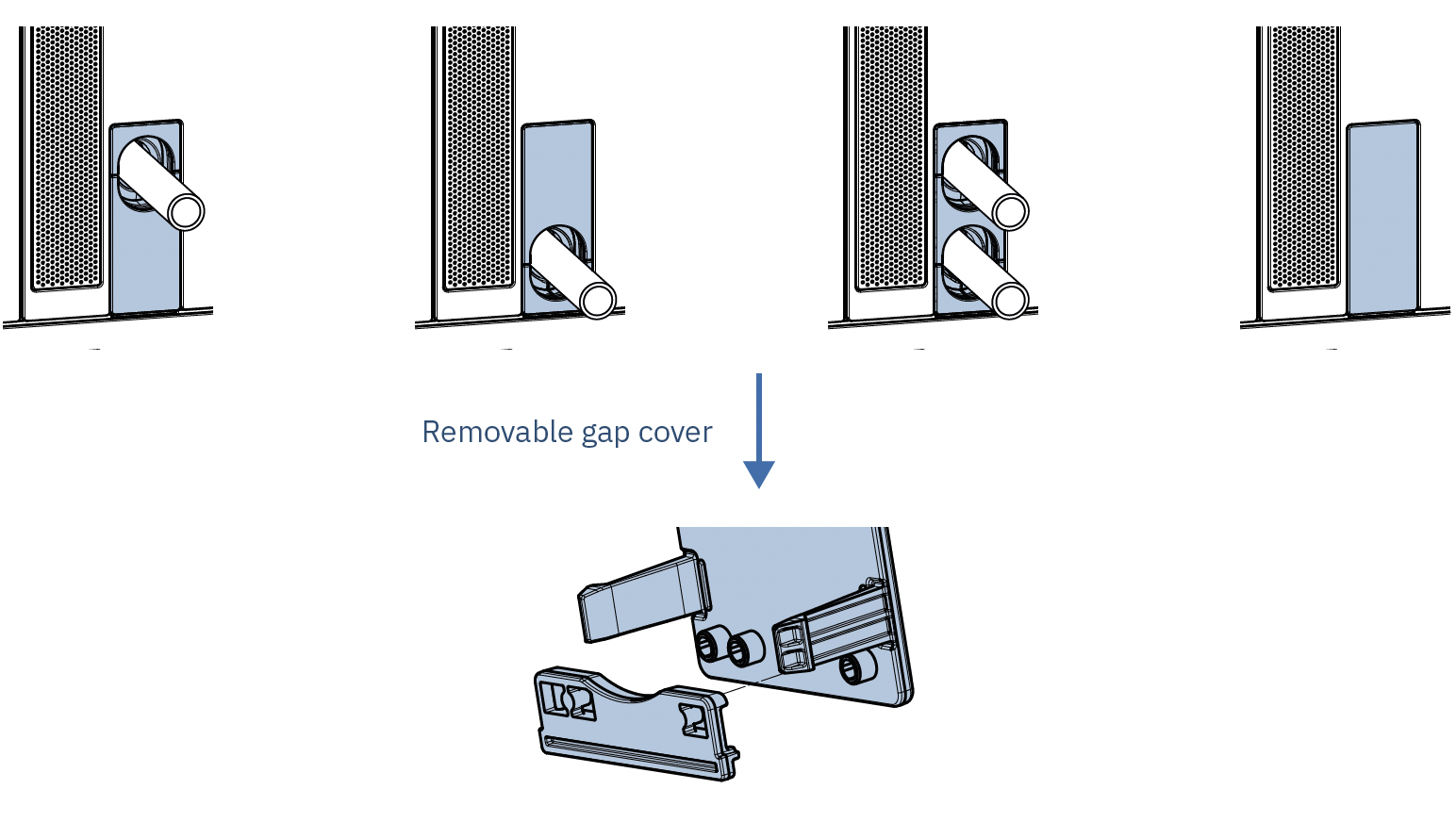 Install conduit covers on the inverter’s left and right sides.The right-side covers require a removable gap cover for the bottom.