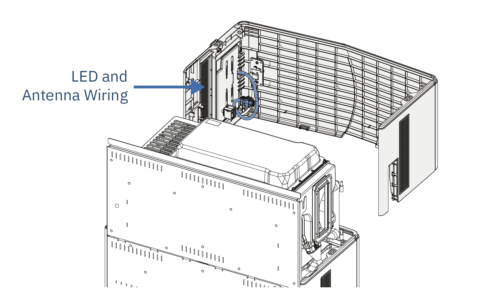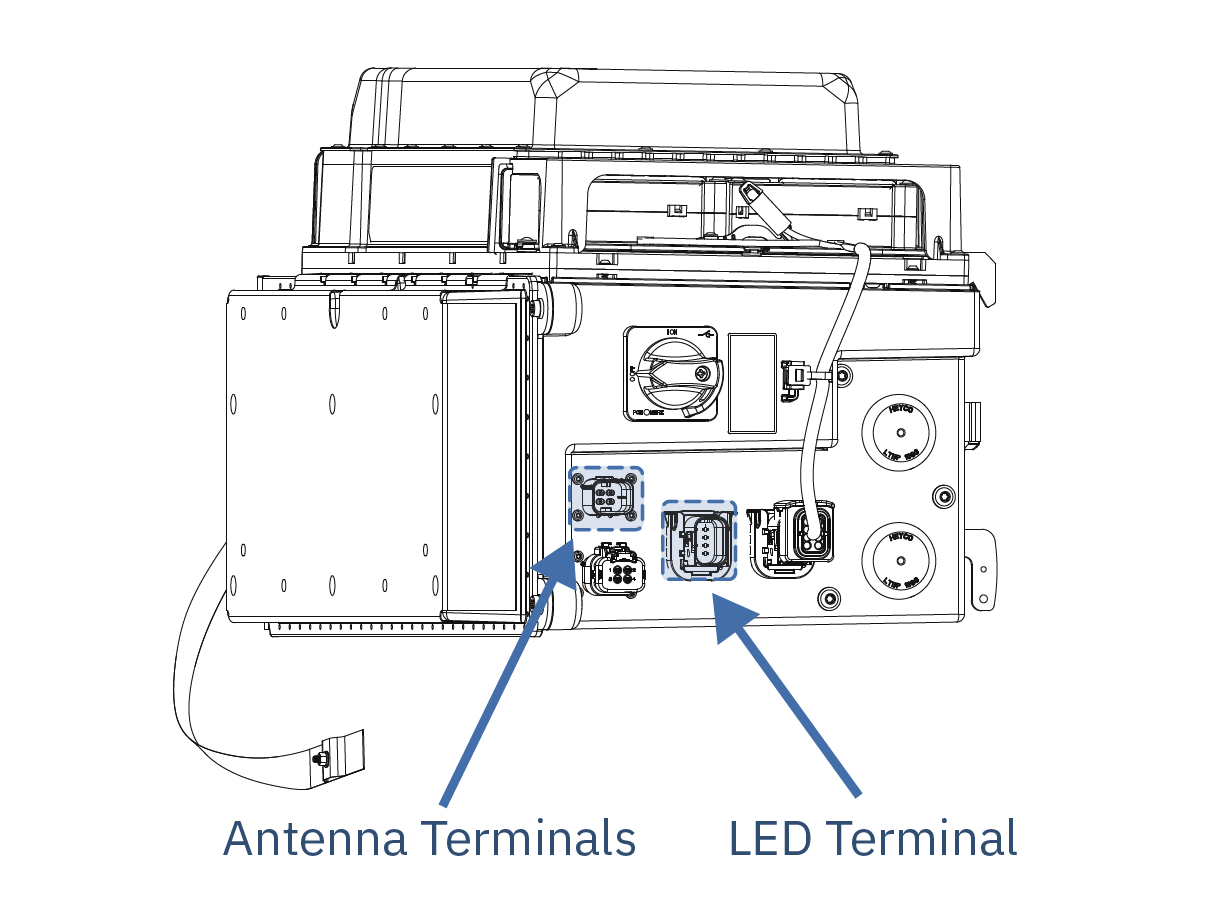 Install the inverter cover identically to the Battery Block cover, then connect the LED and antenna.