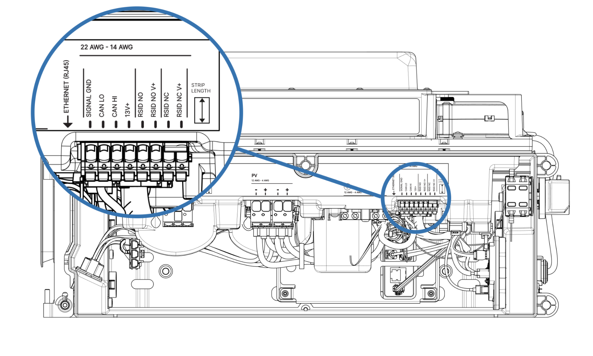 Terminate the CAN communication cable’s drain wire (shielding conductor) at only one end — either the inverter or the Bridge.